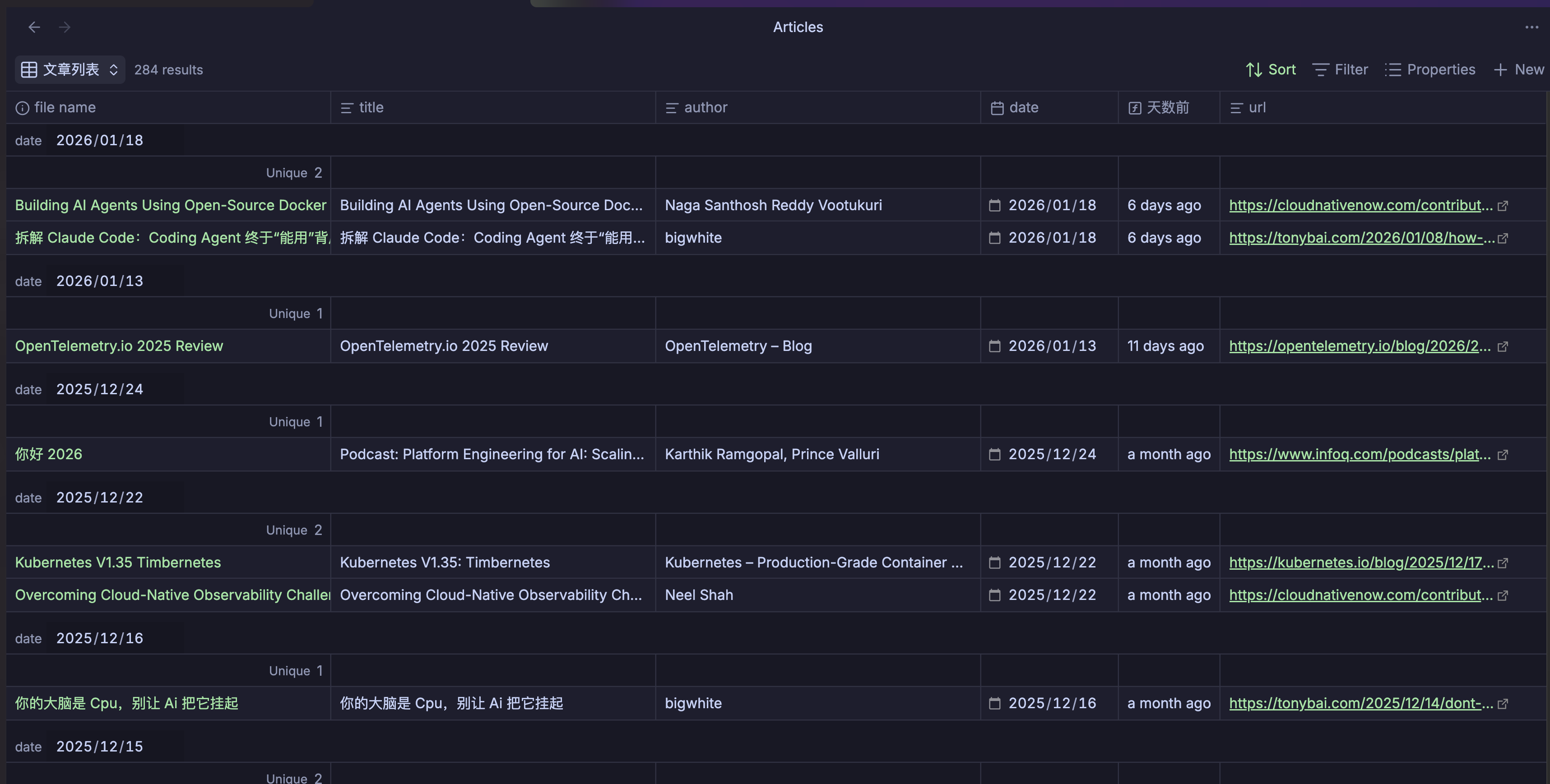 背景:作为一名技术从业者,我通过 Readwise 进行碎片化阅读,收集感兴趣的文章、推文和博客。Readwise 官方提供了 Obsidian 插件,可以自动同步高亮和笔记到本地知识库。但同步后的内容是独立的 Markdown 文件,缺少统一的视图来管理和浏览。