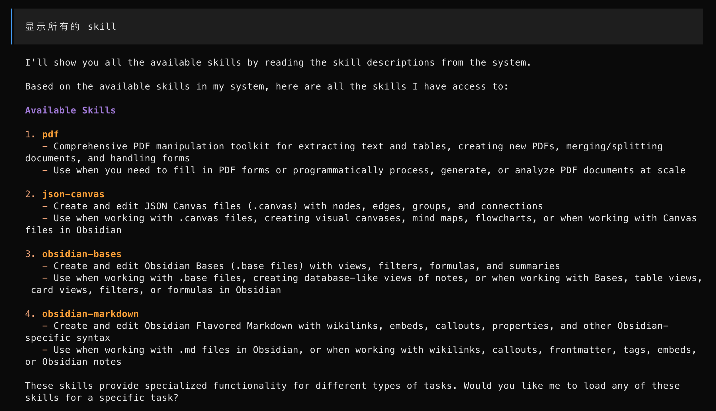 我觉得这个技能对于熟练掌握了 Obsidian Flavored Markdown 语法的用户用处就不打了,而且我更喜欢自己记录笔记,因为记录的过程也是学习、整理和记忆的过程。